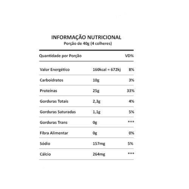 Proteína do soro do leite concentrada, cacau em pó, aroma de chocolate e edulcorante sucralose.