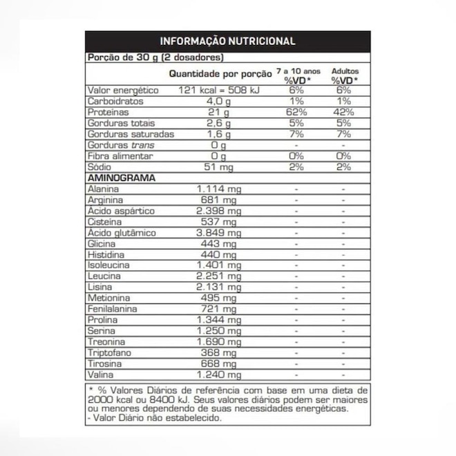 - 10,1g de aminoácidos essenciais por dose