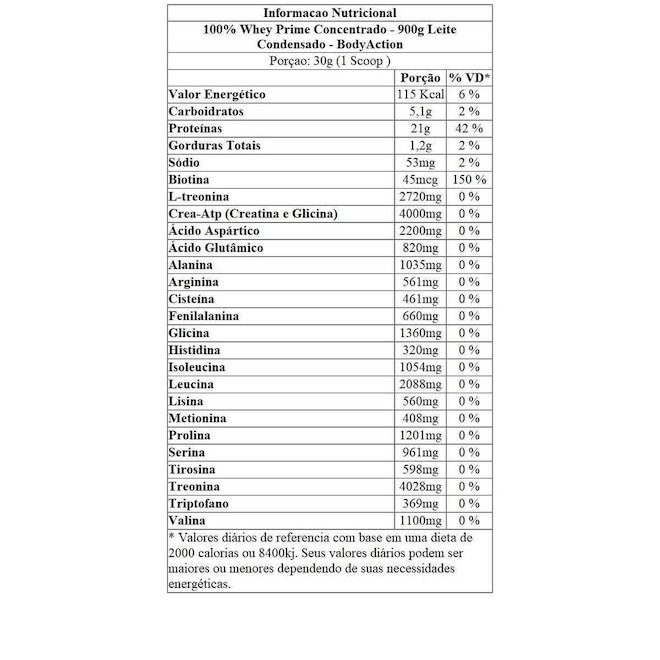 Proteína Concentrada do Soro do leite (WPC), Crea-Atp [Creatina e Glicina], L-Treonina, Biotina, Espessante Goma Xantana, Edulcorante Glicosídeo Steviól (Stévia Rebaudiana), Aroma Sintético Idêntico ao Natural de Leite Condensado. Goma Xantana e Edulcorante Glicosídeo Steviól (Stévia Rebaudiana).