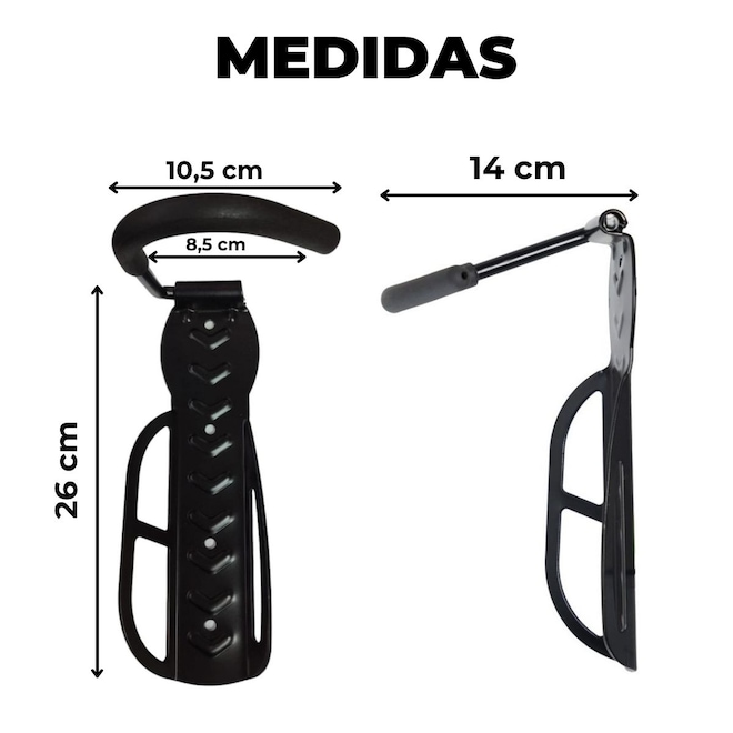 - Gancho com proteção para não arranhar o aro