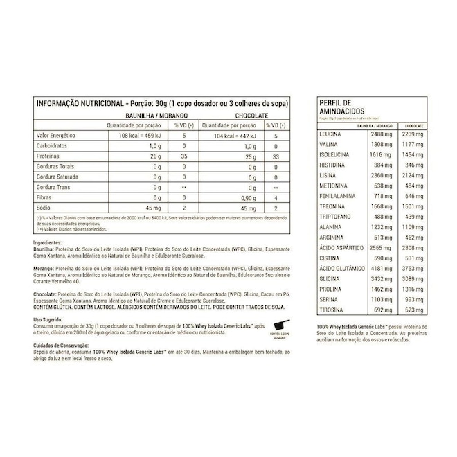 Composição dos KITs: KIT: 900g - Morango Composição: 2 Unidades - WHEY ISOLATE (900g) - Morango - Generic Labs - (Baixar tabela nutricional) ** Importante: Não será permitida troca de sabor de um produto adquirido através de KIT Não será permitido o retorno parcial de produtos do KITref: M0GEF8