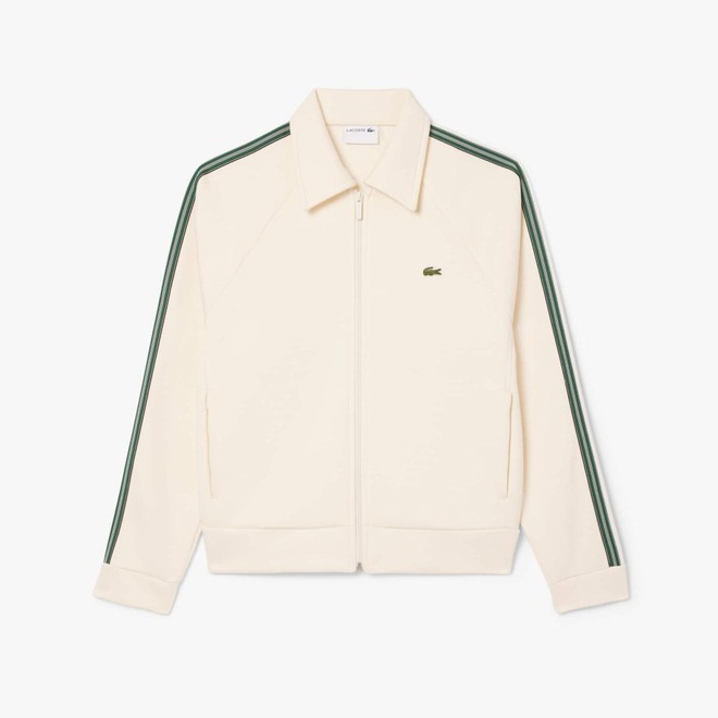 Uma blusa de moletom com zíper elegante, desenvolvida de modo especializado pela Lacoste, criadora de moda esportiva desde 1933. Fabricada na França em confortável malha dupla face, com detalhes de acabamento sofisticados, incluindo painéis listrados texturizados contrastantes. A combinação perfeita de moda e roupa esportiva, acabada com um crocodilo bordado de assinatura.