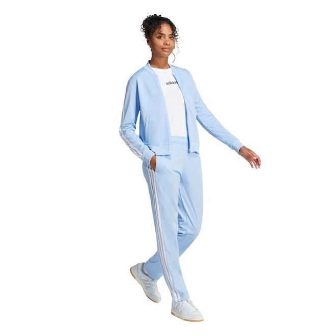 Nome: Agasalho Essentials 3-StripesGênero: Feminino Indicado para: Uso casual Contém: 1 Jaqueta e 1 Calça Código do artigo: JF3382Marca: Adidas Detalhes Jaqueta Capuz: Não possui Detalhes: Fecho de zíper e gola altaManga: Punhos e barra caneladosBolso: Bolsos frontais na jaqueta e na calçaComposição: Material principal: 100% poliéster (reciclado) Detalhes Calça:Cós: Cós elástico e cordão