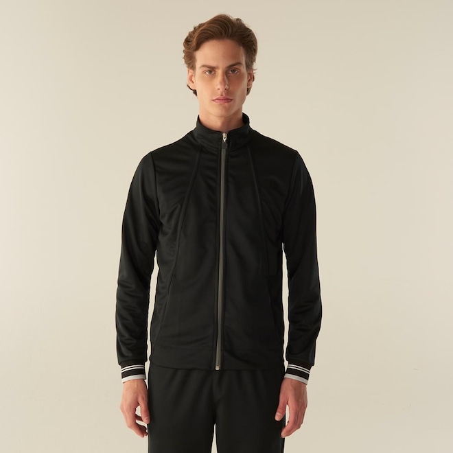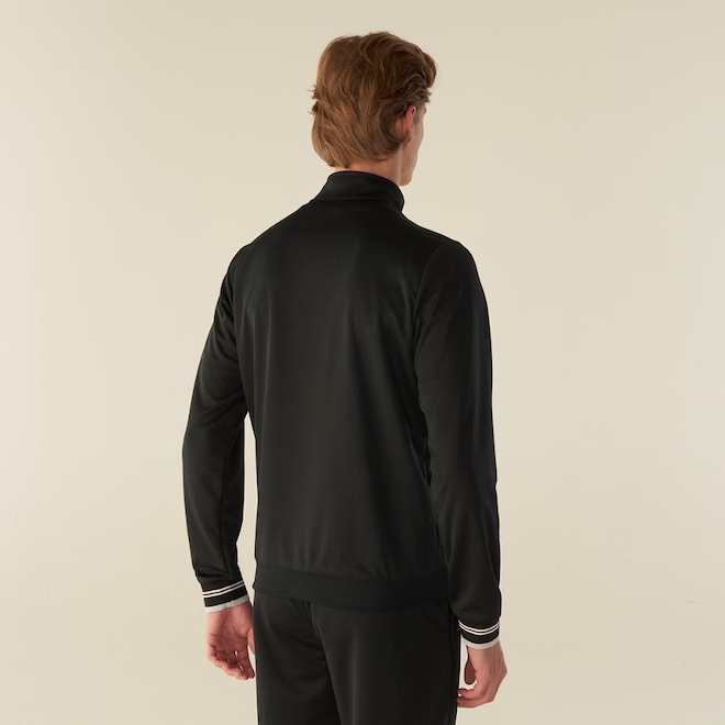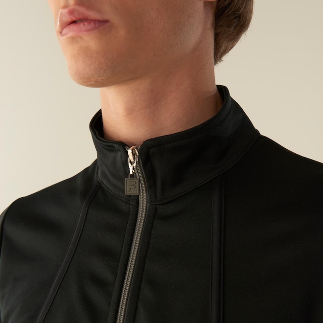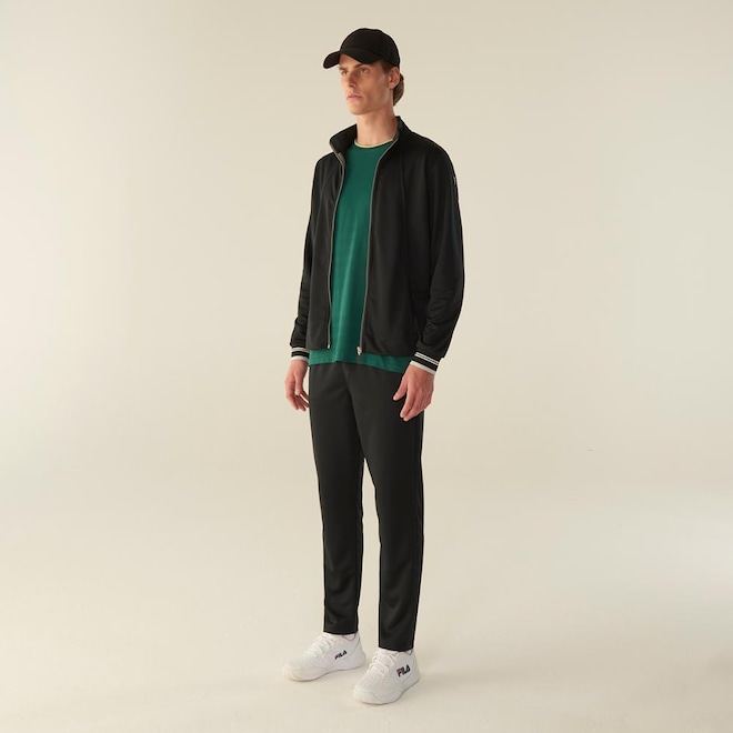 Agasalho Masculino FILA Regular Tennis Sports Club é confeccionado em malha de poliéster com elastano, o modelo conta com modelagem regular que se ajusta perfeitamente ao corpo. A jaqueta destaca-se pelos dois frisos inclinados que formam um recorte na barra, complementada por zíper de poliéster com puxador F-Box. A calça apresenta vincos frontais pespontados, barras tombadas e um cós ajustável com cordão, garantindo conforto durante o uso.