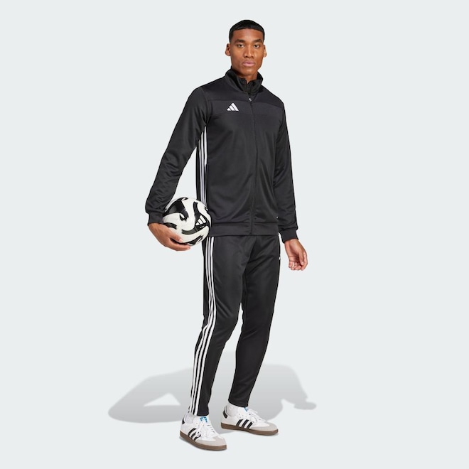 Dê um upgrade no seu estilo fora dos gramados. Este agasalho adidas buscou inspiração no futebol para criar um look vencedor. O tecido AEROREADY que remove o suor mantém seu corpo seco quando a vida muda, seja para treinar futebol ou torcer pelo seu time. A estrutura elegante e o estilo ousado trazem energia ao seu look enquanto você enfrenta novos desafios. Este produto é 100% feito com materiais reciclados. Ao escolher o reciclado, podemos reutilizar materiais já criados, o que ajuda a reduzir o desperdício e a nossa dependência de recursos finitos, além de reduzir a pegada dos produtos que fabricamos.
