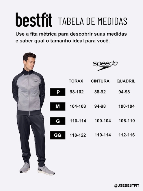 Versatilidade, conforto térmico e estilo esportivo em um só conjunto. O Agasalho Speedo Basic Sports une praticidade e proteção com design clássico e detalhes funcionais. Ideal para treinos ao ar livre, aquecimentos ou uso casual. Aposte nesse combo essencial para os dias mais frios, garanta o seu e eleve sua rotina com conforto e atitude! Especificações: Jaqueta: Gola Alta. Zíper frontal resistente. Bolsos laterais sem zíper. Punhos e barra em ribana. Forro felpado. Logo Bordado. Calça: Bolsos laterais sem zíper. Cintura e barra em ribana. Ajuste em cordão com ponteira personalizada. Forro felpado. 100% Poliéster. Logo Bordado. Benefícios: O forro felpado garante aquecimento e maciez em dias frios. A modelagem com ribanas oferece ajuste seguro e confortável. Jaqueta com zíper e bolsos facilita o uso diário e o transporte de itens pessoais. Ideal para atividades físicas ao ar livre ou como look esportivo no dia a dia. Conjunto completo otimiza o guarda-roupa com praticidade e estilo. Composição: 100% Poliéster (jaqueta e calça). Forro interno felpado para maior conforto térmico. Cuidados e Conservação: Lavar à máquina com cores similares. Não usar alvejante. Secar à sombra. Não passar com ferro quente. Não lavar a seco. Não guarde a peça úmida.