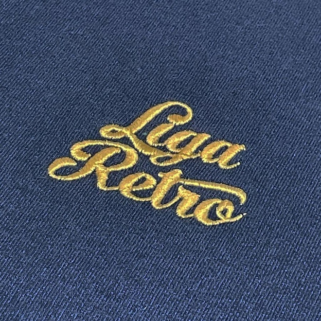 Gola, punhos e barra canelados 2 viés costurados sobre os ombros, da gola aos punhos Escudo bordado com aplique no peito esquerdo Liga Retrô bordado no peito direito Qualidade Liga Retrô Tecido 50% algodão 50% poliéster premium