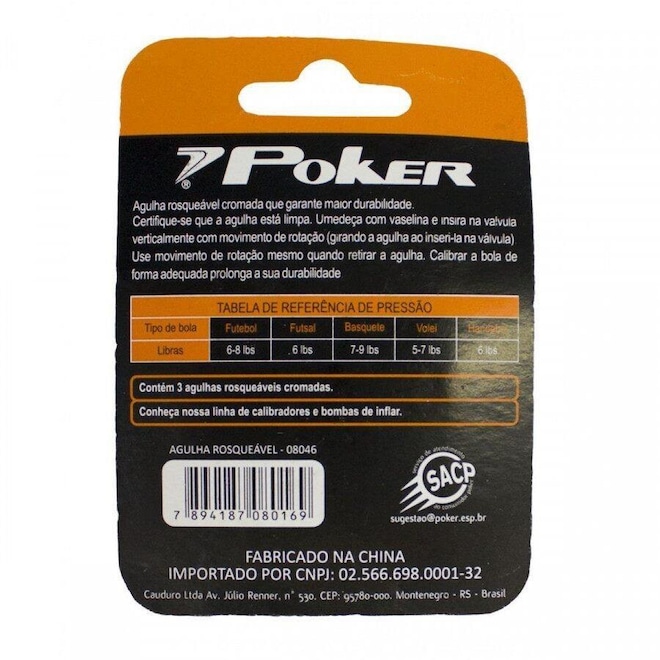 ? A Agulha Poker Rosqueável cromada que garante ótima durabilidade.Ótima opção para calibrar a bola do jogo.