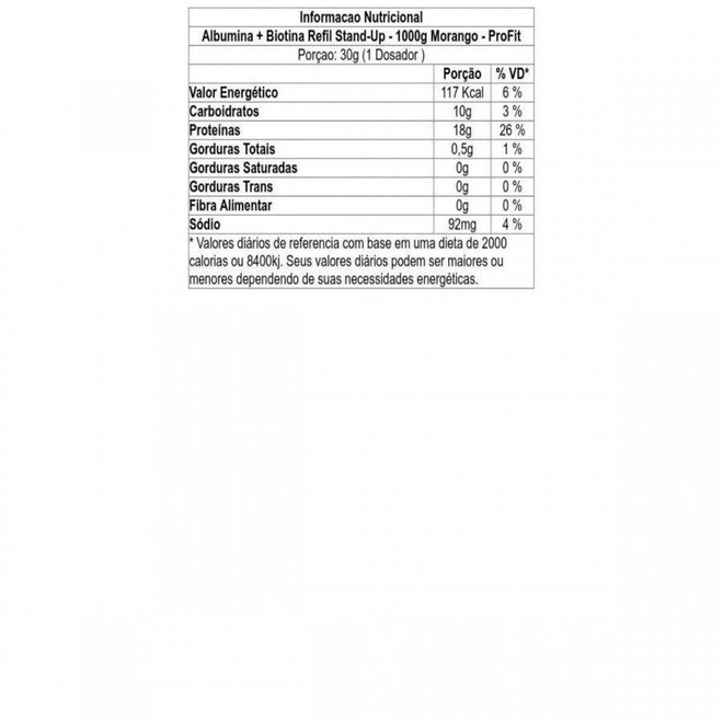 Kit Albumina ProFit + Biotina Refil Stand-Up - Morango - 1000g