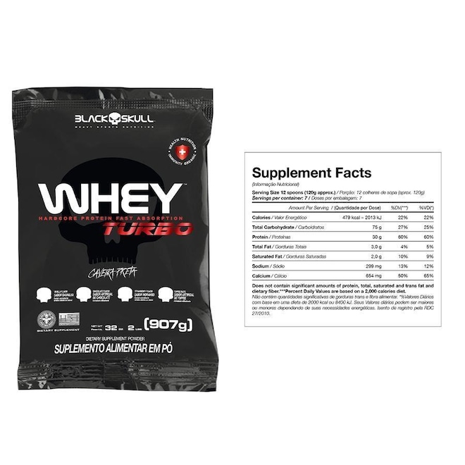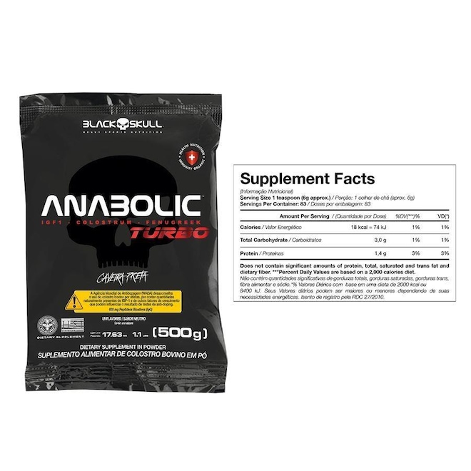 ESTE KIT CONTÉM: Uma unidade do Refil Whey Turbo 907g e uma unidade do Refil Anabolic Turbo 500g. Whey Turbo Para auxiliar você a alcançar seus objetivos relacionados ao aumento da massa muscular e do peso corporal, a BLACKSKULL USA? desenvolveu o WHEY TURBO?, um suplemento que vai turbinar os seus músculos. Cada dose entrega 30 g de proteína em conjunto a maltodextrina. O consumo de carboidratos, como a maltodextrina, em conjunto a proteínas, como o whey protein concentrado, atua na melhora da absorção das proteínas e no fornecimento de energia para o organismo. Anabolic Turbo 500g Anabolic Turbo é um suplemento à base de colostro bovino, com feno grego e maltodextrina. Os ingredientes de sua formulação possuem ação anabólica, tornando este produto um ótimo aliado para potencializar seu ganho de massa muscular.ref: M104WJ