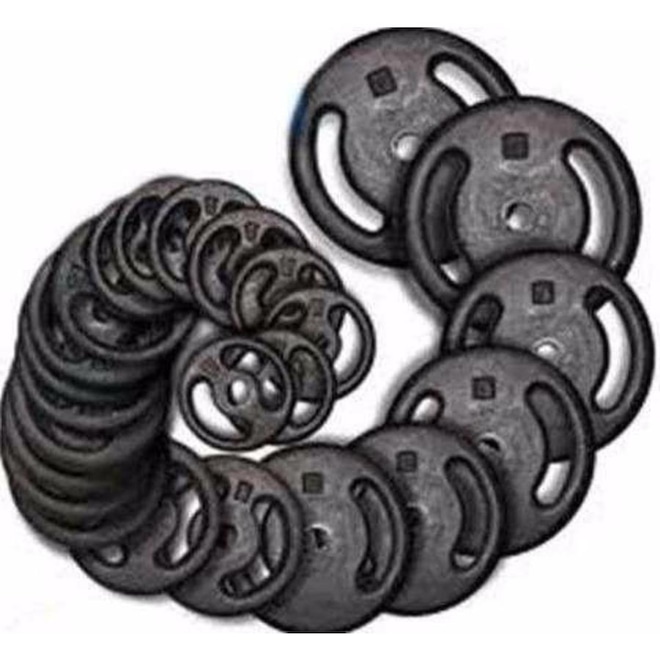 Possui duas pegadas conferindo maior segurança e conforto, facilitando o manuseio no momento da colocação da anilha na barra ou no equipamento.