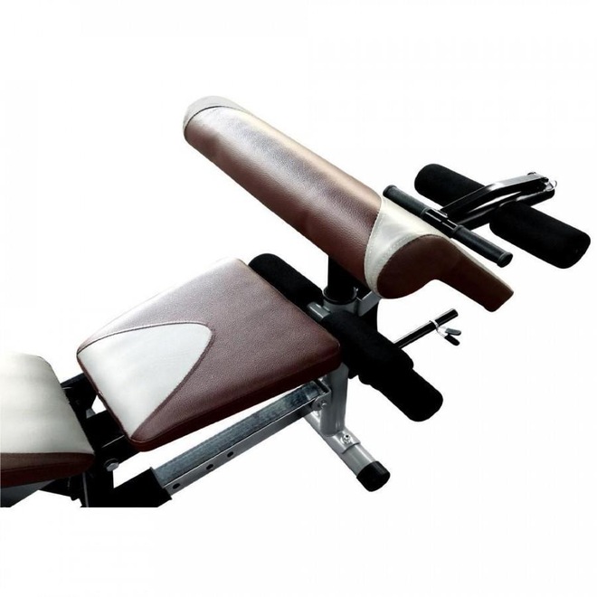 1 Mini Bara Para Bíceps, 1 Barra Grande Para Costas, 1 Banco De Rosca Scott, 2 Travas De Segurança, 2 Suportes De Altura, 2 Presilias Para Pesos.