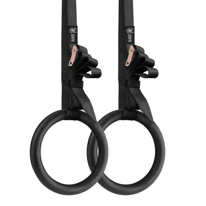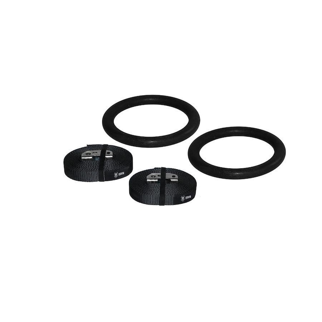 O conjunto é composto por 2 anéis de ABS de alta resistência, tiras de polipropileno com maior espessura para garantir maior segurança ao atleta, com fivelas de fecho rápido, e fáceis de manusear.