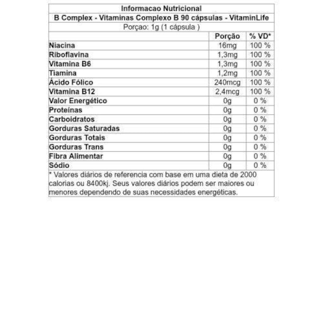 Suplemento Vitamínico VitaminLife B Complex - Vitaminas Complexo B - 90 Cápsulas