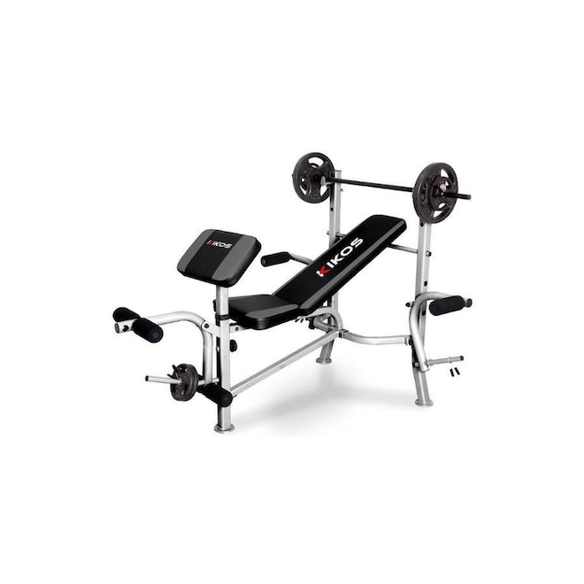 Para quem busca um aparelho completo para diferentes treinos de força. Levante peso e trabalhe peito, ombros e tríceps com a Kikos BAK-80. Recomendado para uso em salas de ginástica de condomínios e academias.Descrição:O Banco Kikos BAK-80 acompanha uma barra para levantamento de peso, puxador alto, mais 2 anilhas de 6.8kg e 2 anilhas de 11.3kg de cimento revestido em plástico. Tudo ocupando um espaço de aproximadamente 115x133x146cm (CxLxA). Além disso, possui estrutura em aço reforçado e pintura eletrostática, que garante maior vida útil ao produto. Treine com conforto graças ao assento acolchoado e extremidades arredondadas que evitam acidentes desse banco.ref: M13FA1