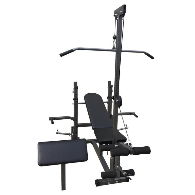 Esse banco desenvolvido pela WCT Fitness possui uma enorme variedade de exercícios,ele também contém uma torre para fazer exercícios de costas, o banco rosca scott que pode ser removido conforme a sua necessidade.
