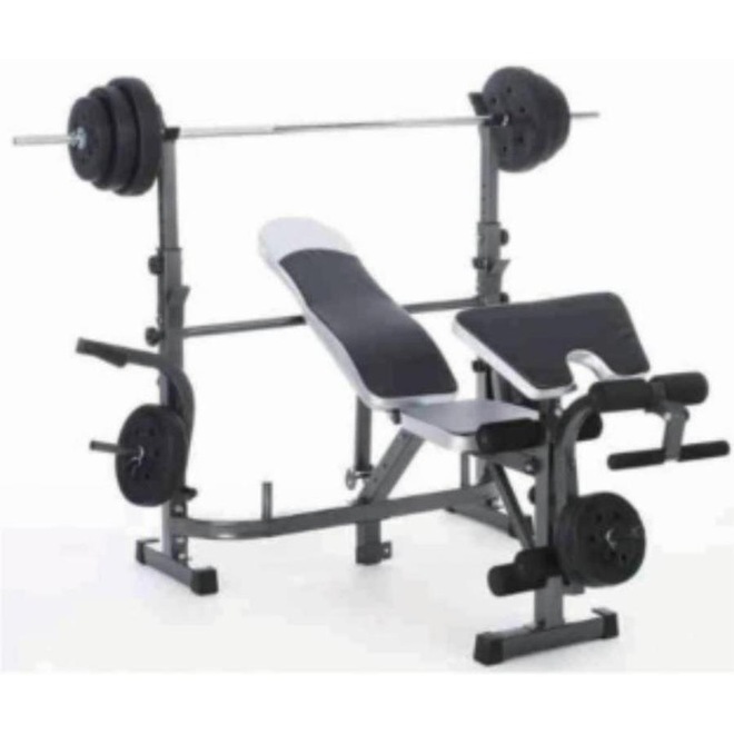 Banco Supino Multifunções Over Life traz para quem quer colocar em prática seus treinos, a Estação de Musculação Banco Supino. Ela permite diversos tipos de exercícios para todos os grupos musculares, oferecendo um ótimo custo-benefício. É compacta, pode ser usada na sua casa e ocupando pouco espaço, perfeita para quem não tem espaço suficiente para estações maiores. Ainda assim, é um banco completo, pois possibilita treinos para membros inferiores e superiores, tórax e abdômen. Projetada para uso de jogos de pesos olímpicos, ainda possui barra de altura ajustável para o encosto do banco, sendo possível ajustar rapidamente pelo pino acoplado na estrutura. O encosto do banco possibilita 4 níveis de ajustes, para que seja possível sempre respeitar a posição correta de acordo com cada tipo de exercício e a estrutura física de cada pessoa. Você pode usar o banco com seu encosto de forma plana ou inclinada. Características:. - Estrutura de tubulação de aço. - Tratamento de superfície por pintura em pó de excelente durabilidade. - Encosto ajustável (inclinado/plano). - Suportes de barra com altura ajustável. - Estofamento de alta densidade revestido. - Permite o uso de Anilhas de até 35cm de diâmetro e com dimensão interna de 2,6 cm. - O peso suportado no butterfly é de 15kg por braço, na perna 10kg e no supino 50kg. - Peso máximo do usuário: 120kg. - Obs: Anilhas e barra NÃO INCLUSAS!.