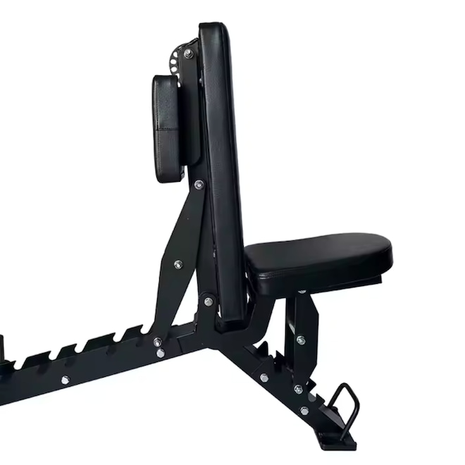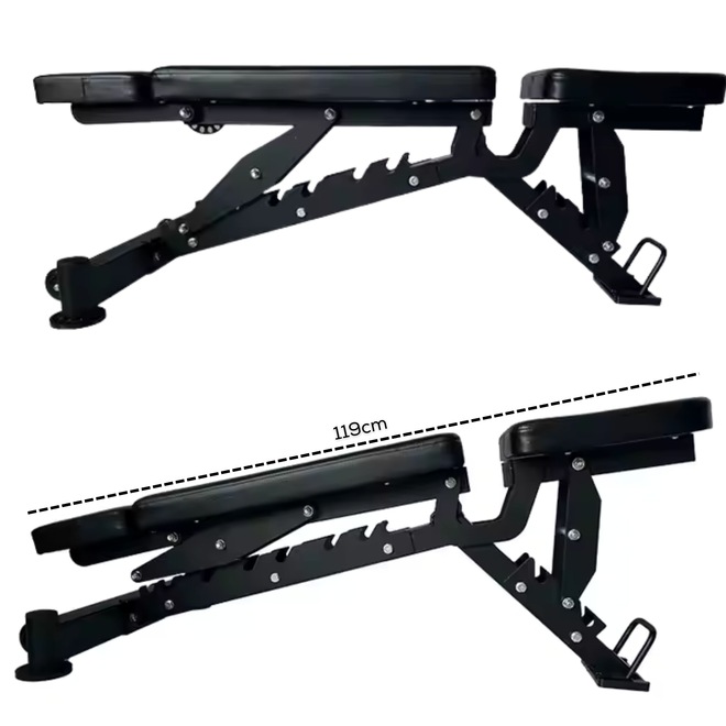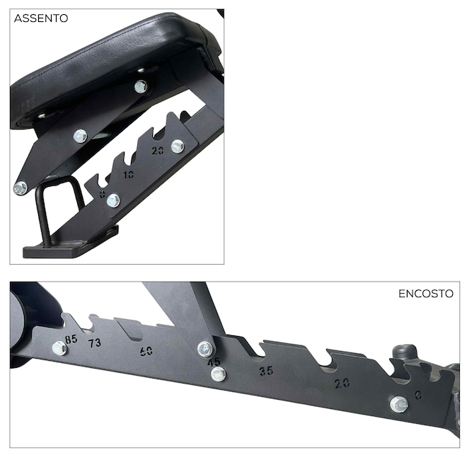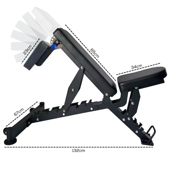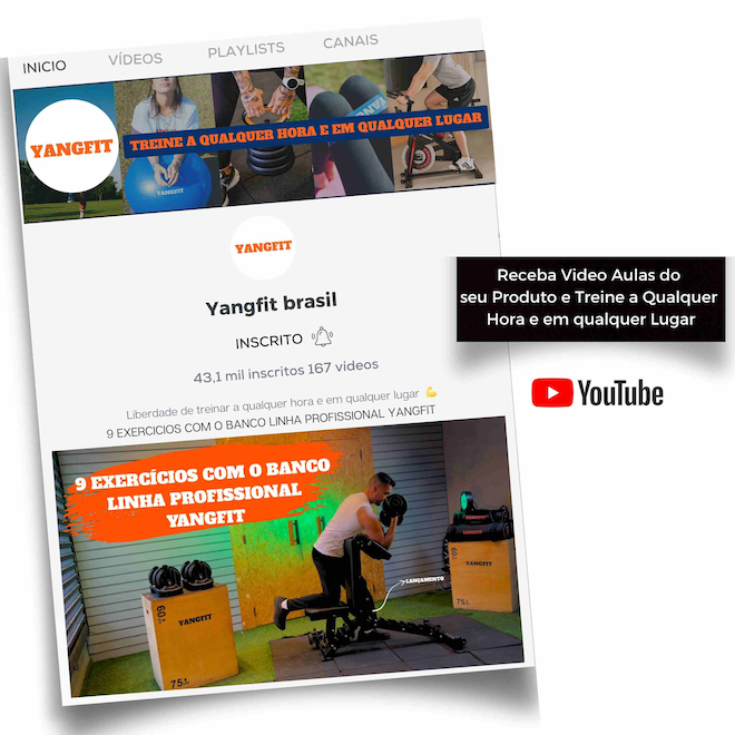 Bônus de Vídeo Aulas Yangfit. Receba nossas vídeo aulas do Banco Regulável Yangfit para você ter liberdade de treinar onde e quando quiser. Não é só equipamento. É saúde, movimento e um novo estilo de vida. Se você busca um equipamento que reúna qualidade, conforto e versatilidade para os treinos de força, o banco de musculação regulável profissional Yangfit é uma excelente opção. Desenvolvido com foco em durabilidade e alta performance, esse banco de musculação atende desde as necessidades de academias, estúdios de treino, condomínios, até pessoas que exigem o máximo de estrutura e desempenho nos treinos em casa. Fabricado com aço reforçado de alta resistência, garante estabilidade total durante os exercícios, trazendo mais segurança para quem usa. Além disso, a pintura a pó eletrostática torna o banco mais resistente à abrasão e à corrosão, aumentando sua durabilidade. Projetado com ergonomia e qualidade superior, o Banco de Musculação Profissional Yangfit se destaca em comparação aos modelos similares no mercado. Ideal para treinos de alta intensidade. Principais funções do Banco de Musculação Regulável Profissional Yangfit: Supino Reto, Inclinado, Declinado; Desenvolvimento de Ombros Frontal, Lateral; Rosca Bíceps no encosto da cabeça, Rosca Alternada; Tríceps Testa, Francês ou com halteres; Abdominais Reto, com inclinação ou com declinação; Remada Unilateral; Elevação lateral e frontal; E muito mais. Benefícios e Diferenciais do Banco de Musculação Regulável Profissional Yangfit: Conforto: Estofamento de alta densidade revestida em courvin sintético de alta durabilidade; Segurança: Estrutura de aço reforçado e de alta resistência, com soldagem de precisão; Eficiência: Banco profissional para uso intenso; Praticidade: Rodinhas e puxador para fácil transporte; Encosto das costas com 8 posições de ajuste (-16°, 0°, 20°, 35°, 45°, 60°, 73°, 85°), permitindo desde o declinado até o inclinado; Assento com 3 posições de ajuste (0°, 10°, 20°); Encosto da Cabeça multifuncional com 7 ajustes: serve como apoio scott para fazer exercícios de bíceps, ou apoio do peito para exercícios de costas e antebraços. Especificações Técnicas: Estrutura: Aço reforçado de alta resistência; Pintura: Eletrostática em Preto Fosco; Estofamento: Espuma de alta densidade com courvin de fácil limpeza; Encosto das Costas: 8 níveis de ajuste; Assento: 3 níveis de ajuste; Encosto Frontal (apoio de cabeça/braços, apoio scott): 7 níveis de ajuste; Capacidade de Carga: até 500 kg (usuário + pesos); Peso do Produto: 29 kg; Dimensões Aproximadas: 119cm de comprimento x 67cm de largura x 123cm de altura máxima; Linha Profissional: podendo atender academias, estúdios e condomínios; Não acompanha halteres, barras ou anilhas.