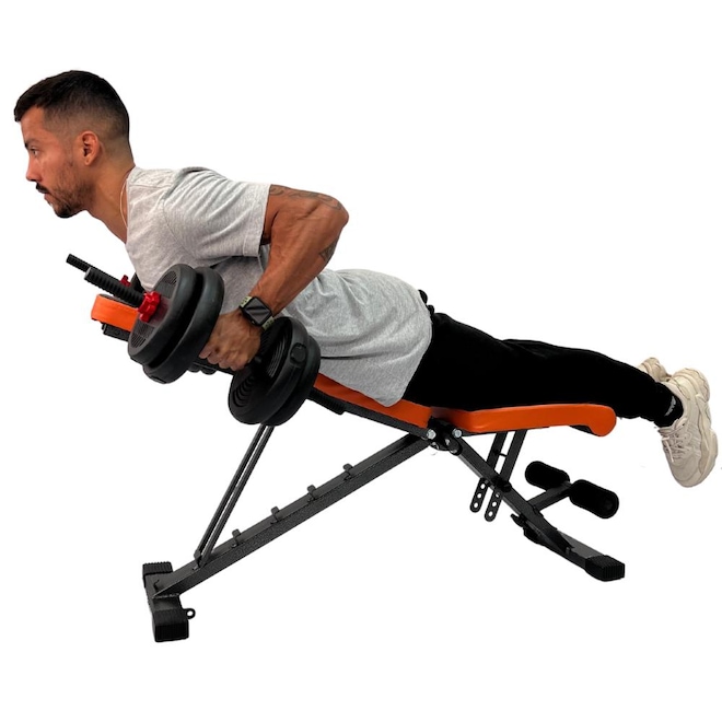 Os 7 ajustes do encosto combinados com as quatro posições reguláveis do assento proporcionam ótimas posturas para malhar bíceps, tríceps, peitoral e core.