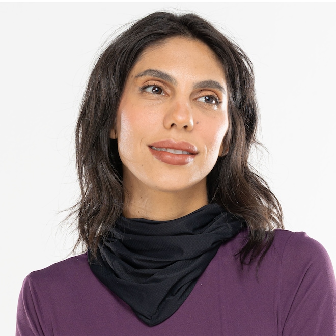 O fator de proteção UV ajuda a blindar a pele dos efeitos nocivos do sol, enquanto o design versátil permite diferentes formas de uso: bandana, máscara, faixa, entre outros.