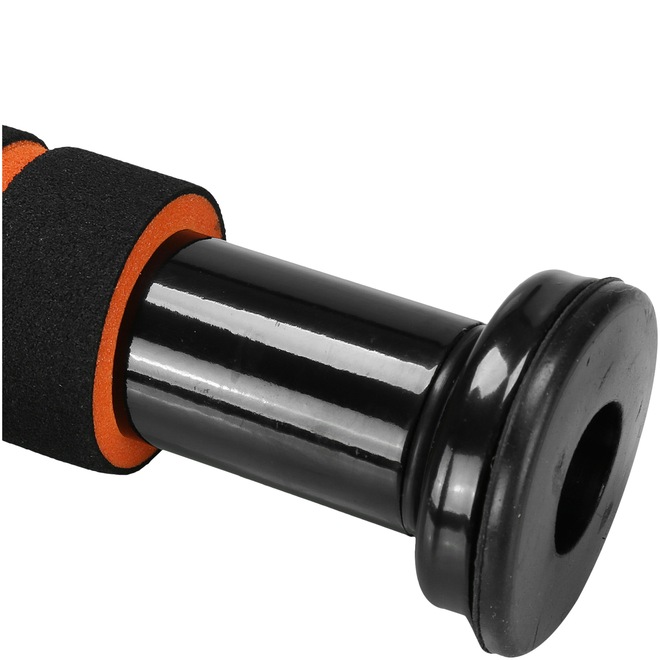 Prática e resistente, a Barra de Porta para Exercícios é ideal para a prática de exercícios físicos de barra fixa supinada de pegada, abdominais, levantamento das pernas e alongamento. Facilmente removível e com manoplas em espuma, é conveniente encaixar a multibarra em portas de 63 cm a 93 cm de largura. Para sua segurança, o peso corporal máximo suportado é de 100 kg, porém, embora a barra de porta bem instalada seja segura, não é recomendado fazer exercícios de inversão (pendurar-se de cabeça para baixo). Não perca a oportunidade e comece os exercícios hoje mesmo. Compre já!ref: 912695