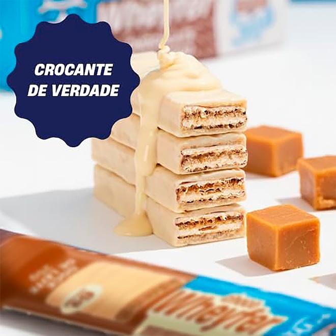 Imagine um wafer super crocante, com recheio cremoso de doce de leite e uma cobertura de chocolate irresistível.