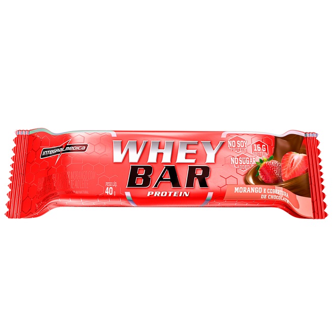 Conheça a Barra de Proteína Integralmédica Whey Bar - 24 Unidades 40g cada - Morango!