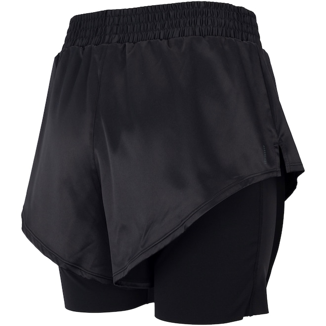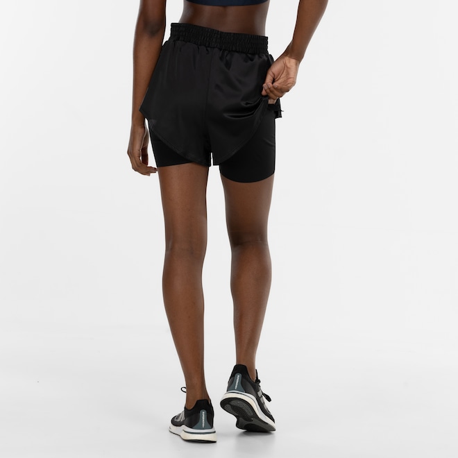 A bermuda oferece versatilidade incomparável, com um design que combina uma bermuda interna justa e um short externo, tudo em uma única peça.