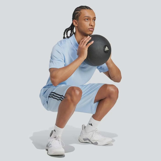 Tecnologia AeroReady: Sistema que controla o excesso de umidade do corpo, garantindo a rápida secagem do suor durante o exercícios. Composição: 100% Poliéster Bolsos: Dois frontais, com zíper Ajuste: Elástico e cordão Cor predominante: Azul Indicado para: Treino Gênero: Masculino Origem: Importada Logo: Estampado Dimensões aproximadas (A x L): P: 48 x 36 cm M: 50 x 38 cm G: 52 x 40 cm GG: 54 x 42 cm EG: 56 x 44 cm