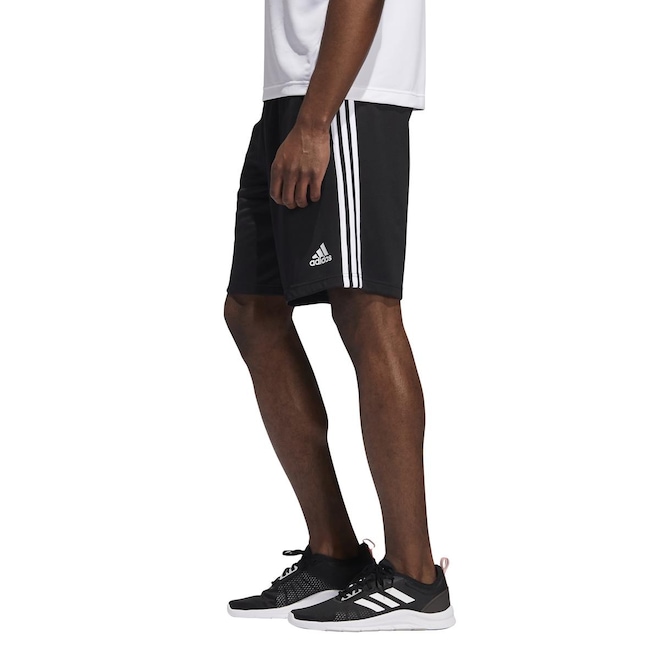 ? De um amistoso jogo de basquete no parque a uma sessão suada na academia, esta Bermuda Adidas Malha 3 Listras Masculina de treino é a escolha certa.O tecido antissuor 100% poliéster mantém seu corpo seco e você confortável, ao mesmo tempo que garante o autêntico look esportivo, com o logo adidas Badge of Sport e as Três Listras estampadas.