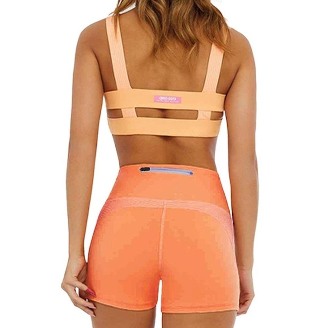A Bermuda Alto Giro Blackout II Feminina confeccionada 86% em poliamida e 14% em elastano com cós alto e o nome da marca personalizado na frente, bolso no cós das costas com zíper refletivo, para guardar itens pequenos e essenciais. Recorte que se estende até as laterais ficando levemente aparente na frente.