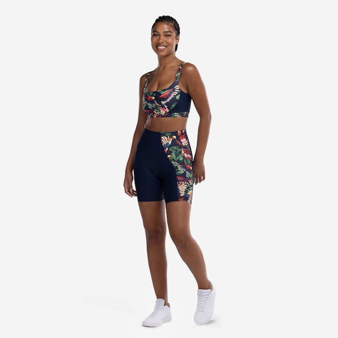 A Bermuda Biker Feminina Farm Voo Pássaros traz uma estampa vibrante e moderna para realçar seu look esportivo.