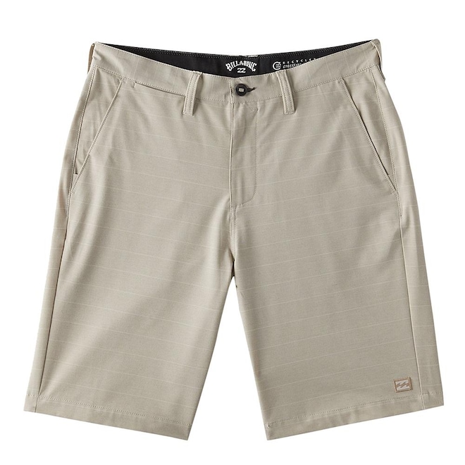 Bermuda Billabong Submersible Crossfire feita em tecido com 4-way stretch feito de garrafas PET recicladas. O tecido possui micro repelência e secagem rápida. Produto feito na modelagem chino, com zíper na vista, fechamento em botão, ziper no bolso traseiro direito e etiquetas personalizadas.