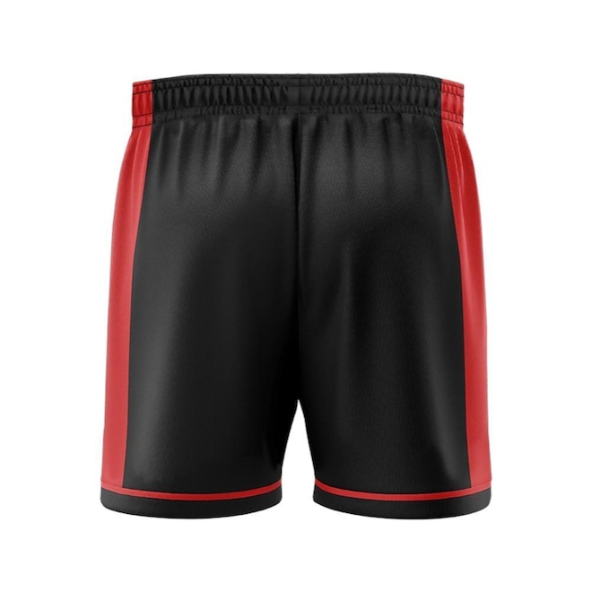 Bermuda com inspiração no basquete e recortes contrastantes. Além disso, a peça leva estampa da assinatura do clube.