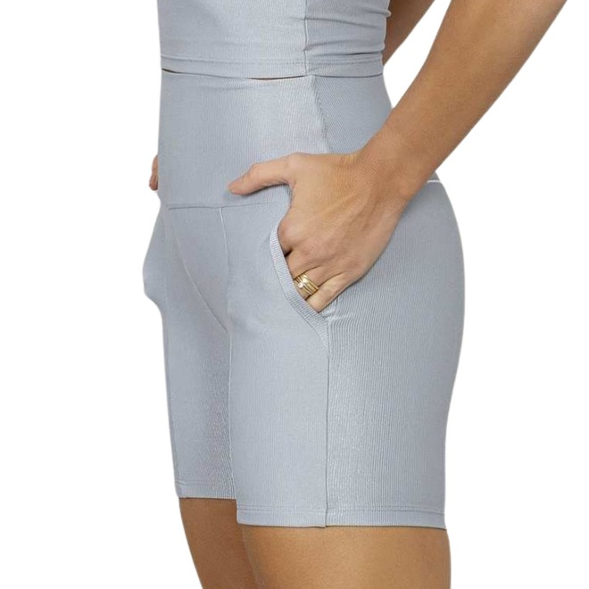 Bermuda Feminina Cintura Alta Glow Run More – Brilho Sofisticado e Conforto