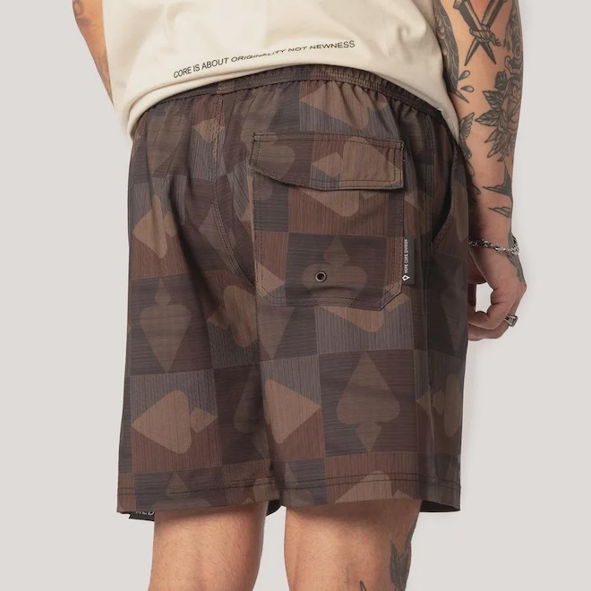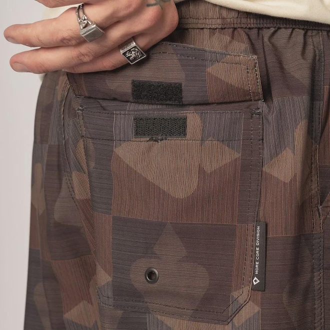 · Etiqueta bandeira More Core embutida na lateral do bolso traseiro.