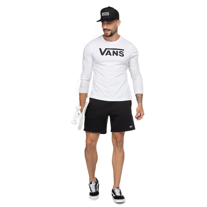 Essa Bermuda de Moletom Vans é um modelo básico e versátil com modelagem Relaxed Fit de cintura elástica, relaxada ao longo do quadril, coxa e perna com abertura regular.