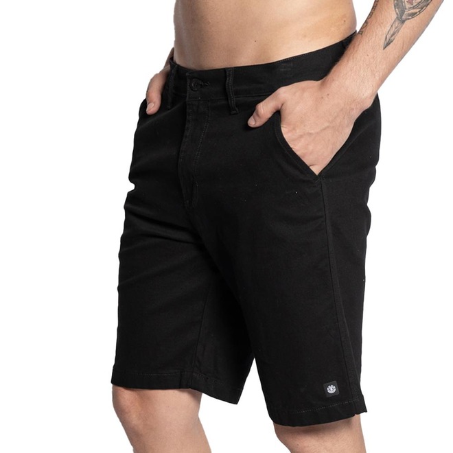 Bermuda Element feita em modelagem straight, bolsos na frente, pence e bolso embutidos na parte de trás, fecho de botão e etiquetas personalizadas.