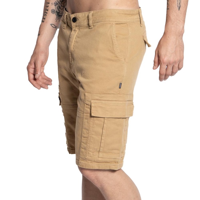 Bermuda Element feita em modelagem straight, bolsos faca com mini bolso embutido na parte de trás, pence e bolsos embutidos na parte de trás, fecho de botão e etiquetas personalizadas.