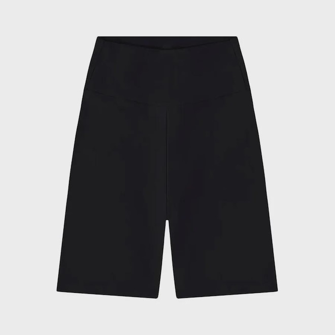 Cós Antideslizante: Apresenta um cós largo de cintura alta com silicone interno. Este detalhe crucial garante que a bermuda permaneça firme no lugar durante qualquer movimento, oferecendo máxima segurança e suporte.