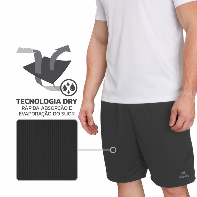 A Bermuda Esportiva Basic da Muvin foi desenvolvida com o objetivo de proporcionar desempenho e conforto em diversas atividades esportivas. Por ter uma modelagem ampla e confortá vel, é uma peç a que permite uma maior amplitude no momento do jogo ou do treino, o que garante um melhor desempenho em quadra. O tamanho é adequado para diversas modalidades esportivas, como futebol, voleibol, handebol, futevôlei e beach tennis, já que é uma peça que permite movimentos amplos sem atrapalhar as jogadas. É confeccionada em tecido leve e respirável, e que possui a tecnologia Dry, que facilita o transporte do suor para fora do calção, evitando atrapalhar a prá tica esportiva e garantindo conforto ao praticante. Por conta dessa boa respirabilidade do tecido, evita o odor e proporciona mais conforto ao praticar atividades esportivas. Alé m da modelagem mais larga, que garante uma movimentação mais satisfatória em questão de amplitude durante a prá tica esportiva, possui elástico na cintura para que a peç a fique confortá vel nessa região, alé m de cordão de amarração interno para um melhor ajuste e bolso. É uma peç a que te acompanhará em suas atividades garantindo conforto, pois o tecido leve e respirável irá te manter livre do incômodo do suor. É respirável, suave em contato com a pele e possui secagem rápida.