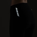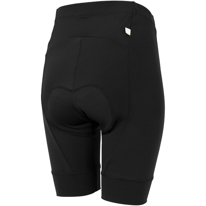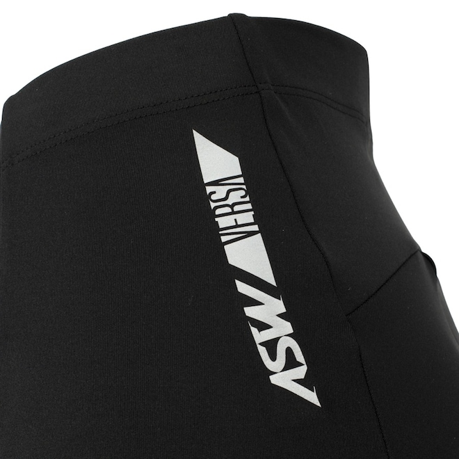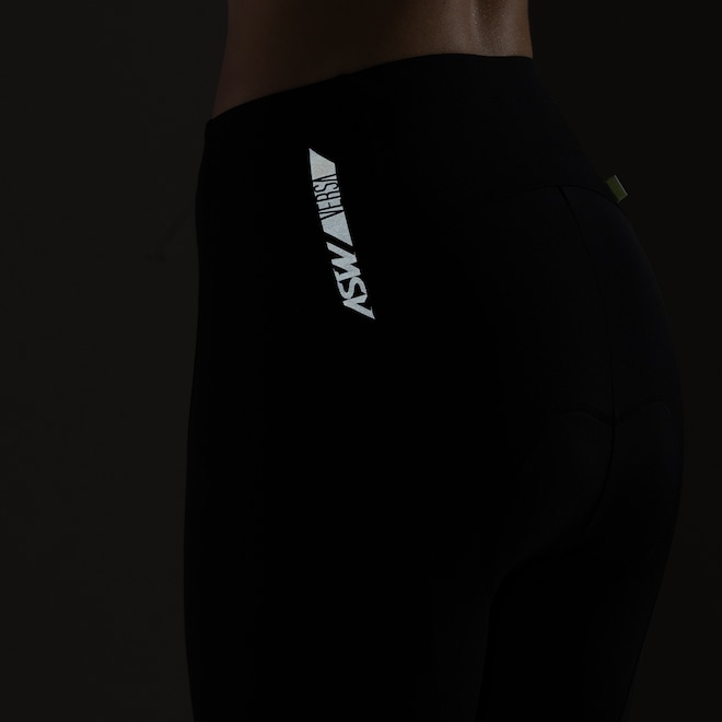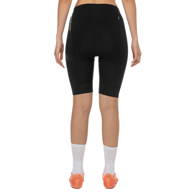 Possui elástico na coxa para maior aderência e detalhes refletivos que aumentam a visibilidade da ciclista nos locais de pouca luminosidade.