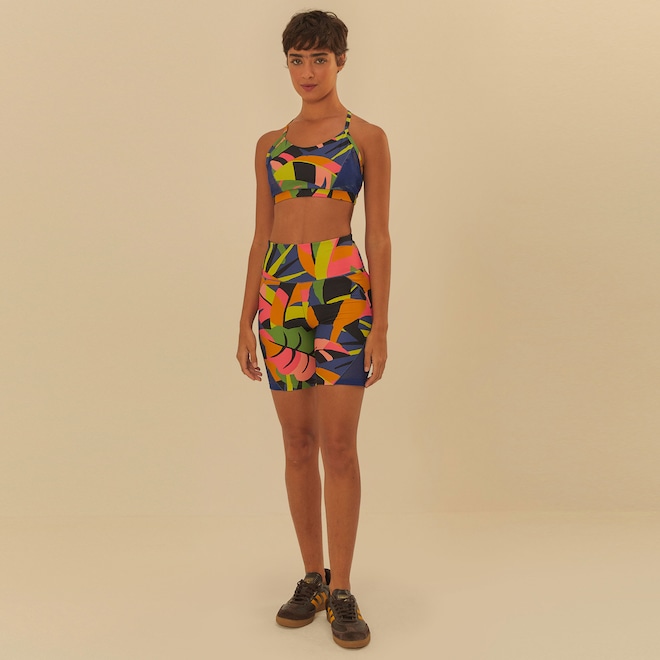 A Bermuda Feminina Farm Biker Floresta Leopardo combina estilo e funcionalidade com seu design de cós médio e média compressão.