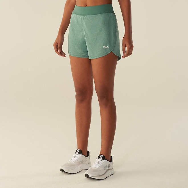 Shorts feminino produzido em malha mescla 100% poliéster com tecnologia FLOW para controle térmico e shorts interno em poliamida elastizada com tecnologia UV PROTECTION FPS 50+. O design conta com cós anatômico e bermuda interna com compressão moderada, garantindo conforto e mobilidade. Ideal para treinos de baixa e média intensidade. Logo FILA Linear aplicado na lateral esquerda frontal. Comprimento total: 33 cm. Entrepernas: 6 cm.