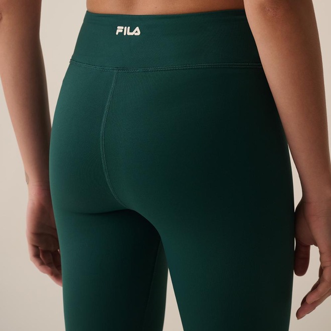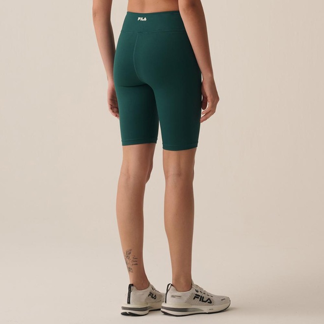 Bermuda feminina em poliamida com elastano, modelo ciclista. Seu tecido contém as tecnologias UV PROTECTION, que oferece proteção solar FPS 50+ dos raios UVA e UVB, e a FLOW, que proporciona rápida secagem, mantendo o corpo na temperatura ideal para a prática esportiva. Cós anatômico com elástico interno. Logo FILA letter aplicado na lateral superior. Comprimento total: 48 cm.
