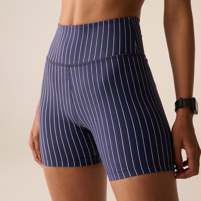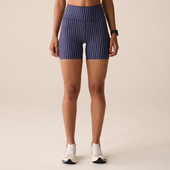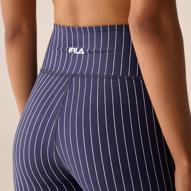 Bermuda feminina confeccionada em em malha de poliamida elastizada. Modelagem slim fit, ajustada ao corpo, com cintura alta e costuras Flat (sem atrito com o corpo). Possui estampa Fila Pinstripes full print, cós de 10 cm com elástico interno de 0,7 cm, gusset entrepernas e logo Fila Letter em silicone centralizado no cós traseiro. Comprimento total: 41 cm.