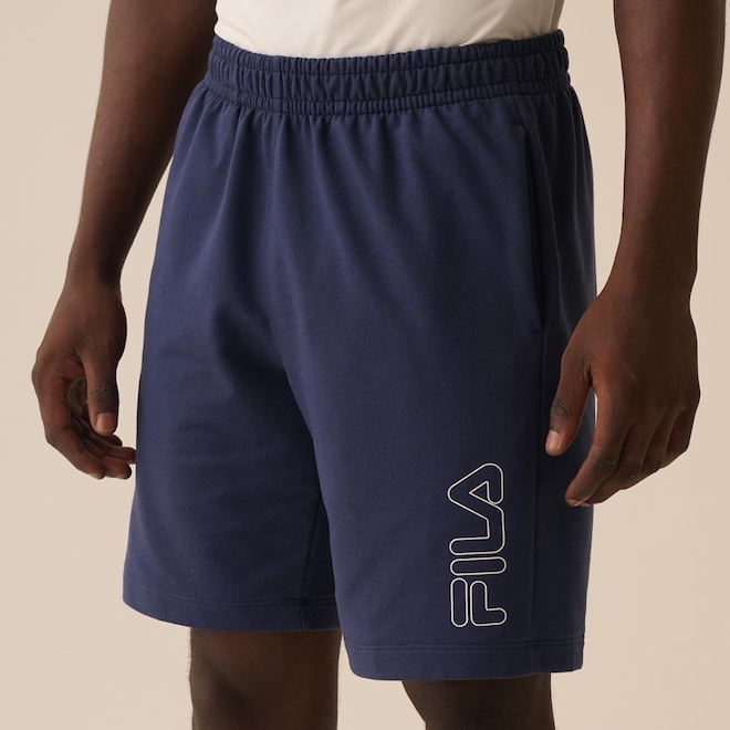 Bermuda masculina feita em moletinho leve com modelagem regular e comprimento curto. O cós tombado com elástico garante ajuste firme e confortável, os bolsos faca com forro em meia malha de algodão trazem praticidade. Possui estampa em silk FILA Linear Outline na parte frontal. Comprimento total: 54 cm. Entrepernas: 23 cm.