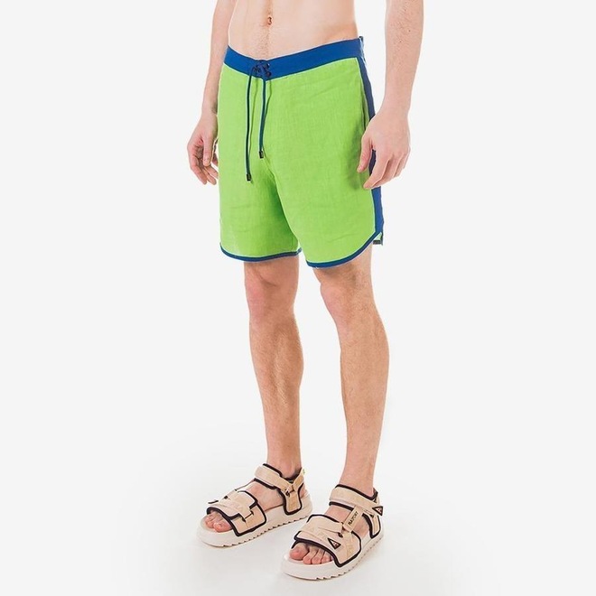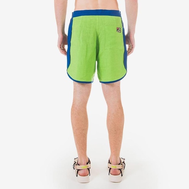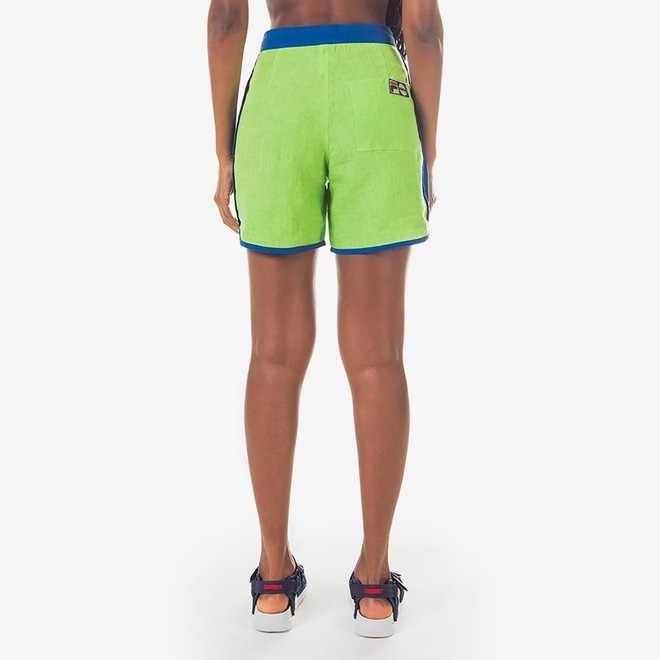 A Perigo agrega à FILA todo o estilo dos modelos confeccionados em linho 100% puro, com inspiração retro -futurista, que combinam perfeitamente com o clima tropical da cidade maravilhosa e de vários outros cenários encantadores do Brasil. Bermuda unissex confeccionada em 100% linho, modelagem com recorte lateral para maior liberdade de movimentos, cós com cordão duplo para ajuste e bolso traseiro com patch da collab.