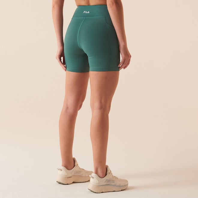 Bermuda feminina confeccionada em malha de poliamida com elastano. Possui tecnologia FLOW para respirabilidade e também UV PROTECTION FPS 50+. Com modelagem slim fit e cós alto, conta com bolsos laterais, recorte frontal com costura flat que proporciona conforto adicional, e detalhe do FILA Letter aplicado na parte traseira da peça.ref: M17LQ1
