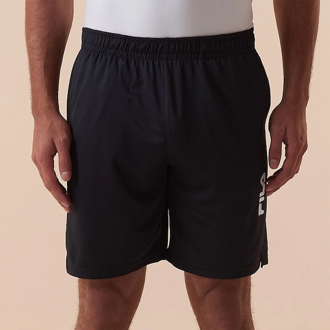 Bermuda masculina confeccionada em malha texturizada sustentável de poliéster reciclado na modelagem regular. Indicada para treinos de baixa e média intensidade, contém a tecnologia FLOW, que proporciona rápida secagem e evasão do suor, mantendo o corpo na temperatura ideal para a prática esportiva. Possui cós franzido de elástico, bolsos laterais, aberturas laterais na barra para maior mobilidade e logo FILA Linear vertical em termo com relevo aplicado na lateral esquerda.